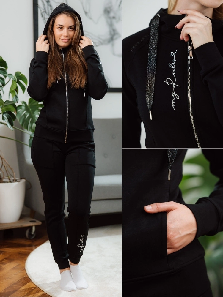 - Cozy hood with refined, shimmering details for a subtle statement